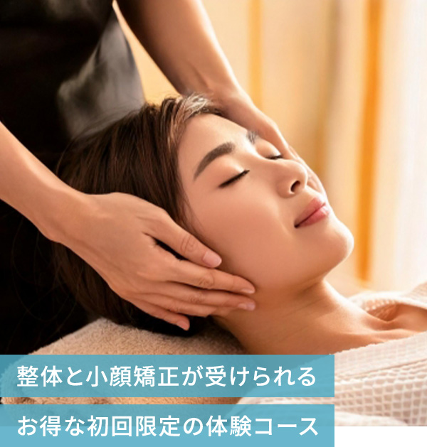 首肩周りを整体でゆるめて小顔になりやすい土台を作ります。